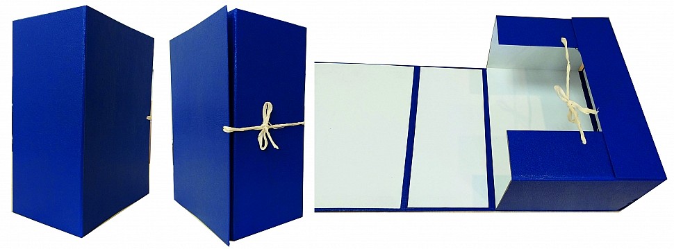 Изготавливаются под заказ из плотного картона (корешок или вся папка в бумвиниле) на завязках. Количество завязок заказчик выбирает индивидуально. Размер корешка от 30 до 200 мм.