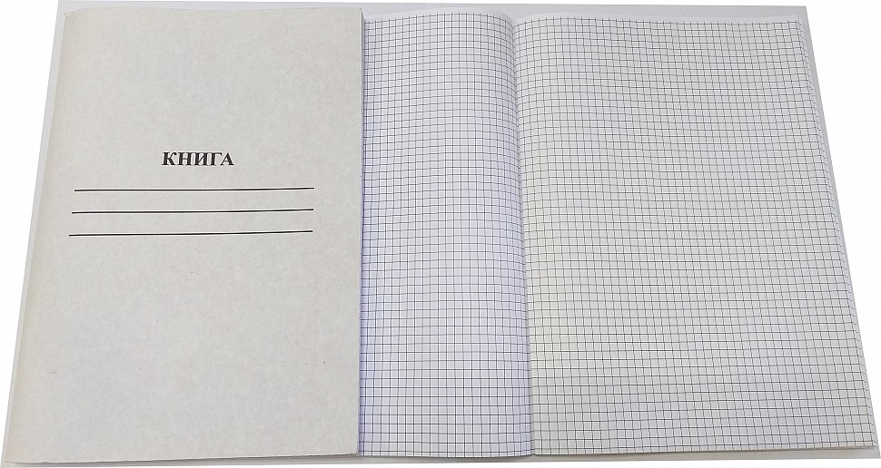 Книга канцелярская, формат А4, бумага 65гр/м2, сшитая втачку или лагинами, обложка бумвинил, в клетку или линейку, на 100 листов или на 80 листов